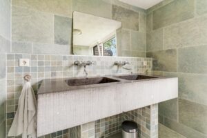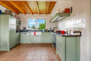De woonkeuken is een heerlijke ruimte voor wie wil dat de eettafel een centrale plek is. Met genoeg plekken voor de kinderen, of gewoon voor zoete inval. Hier past een hele grote eettafel met uitzicht op het terras: zo gezellig! De landelijke afwerking en de boerenplavuizen voegen extra karakter toe. En met een 5-pits gasfornuis en een dubbele oven, is koken voor een groot gezelschap geen enkel probleem.