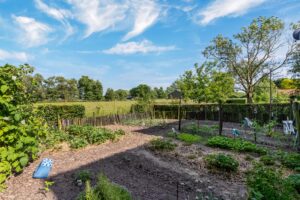 De tuin is net zo landelijk als het interieur. Je woont hier helemaal vrij dus hebt volop privacy en bent omringd door groen. In de weilanden is ruimte genoeg om dieren te houden en in de moestuin kweek je je eigen groente en fruit. Even ontspannen en genieten van de rust? De beschutte binnenplaats is de perfecte plek om uit de wind en in de zon te zitten.