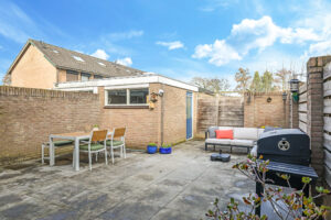 De achtertuin is onderhoudsvriendelijk aangelegd en biedt volop privacy. Meteen aan de woning ligt een ruim terras waar met gemak een loungeset past. Achterin de tuin staat een ruime stenen berging en er is een achterom aanwezig.