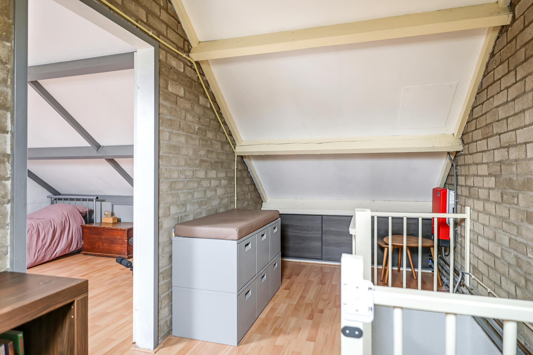 De tweede verdieping heeft nog een ruime overloop en een vierde slaapkamer. Op de overloop hangt nog een airco. Dat maakt deze ruimte ideaal als werkruimte, hobbykamer of logeerverblijf. Een gezin, thuiswerken of hobby’s – het past allemaal.