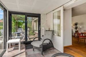 De serre is echt een pareltje. Hier geniet je het hele jaar door van het buitenleven, met een prachtig uitzicht op de groene tuin. Dankzij de schuiframen haal je de natuur zo naar binnen. Of je nu een extra zitkamer wilt of een rustige werkplek, deze ruimte biedt het allemaal.