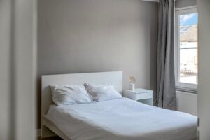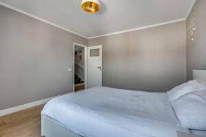 Boven zijn drie lichte slaapkamers, die net zo groot zijn als het lijkt op de plaatjes. Een van de kamers is nu ingericht als kastenkamer: zo fijn om al je kleren zo netjes een plek te kunnen geven! Die kamer is natuurlijk ook te gebruiken als baby- of kinderkamer. En dan is er nog de badkamer: lekker neutraal ingericht en met een douche, dubbele wastafel én tweede toilet.