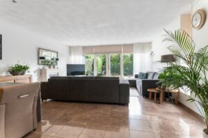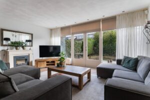 De woonkamer is uitgebouwd aan de achterkant, waardoor het een heerlijk ruime plek is geworden. Hier kun je met gemak met iedereen op de bank neerploffen! En in de zomer is het extra genieten, want dan kun je de tuindeuren wijd openzetten. Dat geeft de woonkamer een gevoel van ruimtelijkheid en laat de ruimte nog groter lijken. Dankzij de ligging van de tuin op het oosten, blijft het binnen tijdens warme zomers lekker koel.