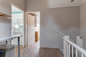 Op de bovenverdieping vind je maar liefst vijf slaapkamers, een handige wasruimte en een ruime badkamer. Genoeg ruimte voor het hele gezin dus!