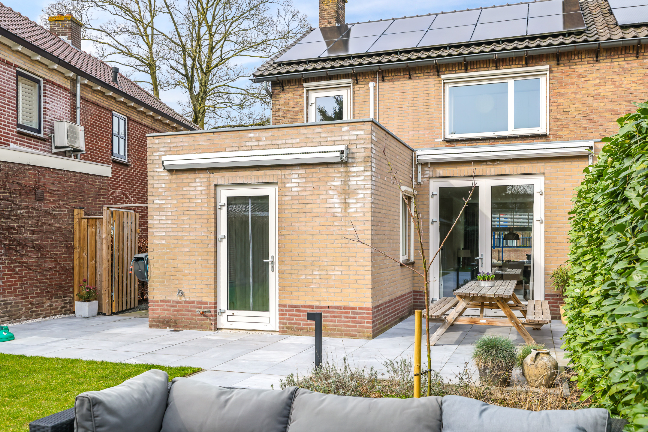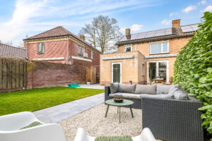 Het terras bij huis is voorzien van zonwering zodat je de warmte buiten houdt. Dankzij de erfafscheidingen zit je hier ook nog eens lekker privé. Dus of je nu houdt van rustig koffie drinken in de ochtendzon, borrelen met vrienden of kinderen die eindeloos buiten spelen, deze tuin is jouw plek.