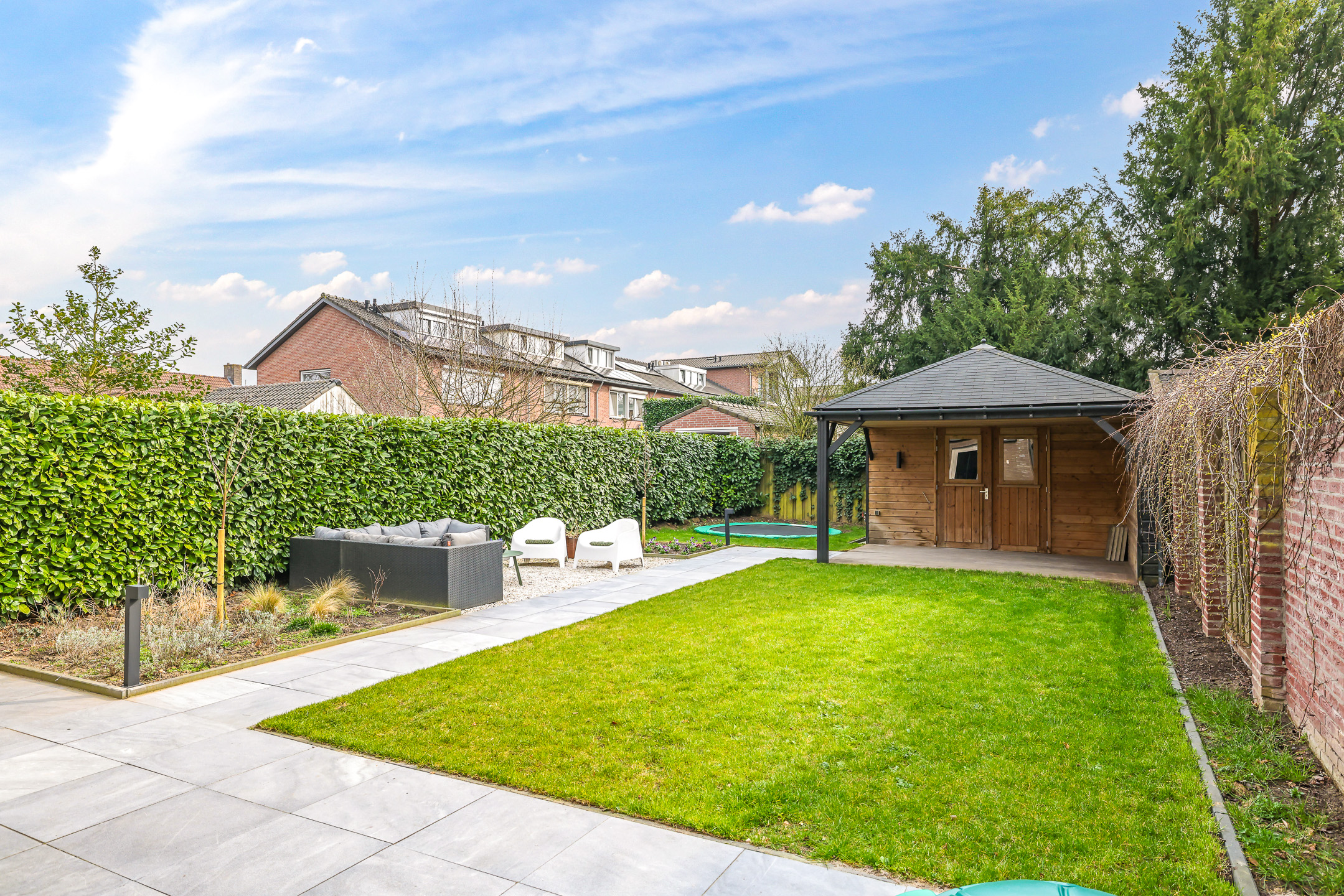 Een van de grootste verrassingen van dit huis? De tuin. Want zo centraal wonen met zo'n diepe achtertuin op het zuiden, dat is echt een luxe. Hier heb je ruimte voor een grote loungeset, een eettafel, speeltoestellen voor kinderen of gewoon lekker veel groen. De indeling is overzichtelijk en onderhoudsvriendelijk, met een mooi gazon en een ruim natuurstenen terras en looppad. Achterin is nog riant tuinhuis met vliering en overkapping.