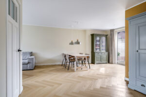 Dit huis heeft precies wat je beneden graag wilt. Een open leefruimte die breed aanvoelt, lekker licht is en logisch in elkaar overloopt. De visgraatvloer en lichte afwerking geven het geheel een moderne, warme basis. Hier zet je zonder moeite een royale zithoek neer, een grote eettafel voor lange avonden en houd je nog steeds ruimte over.