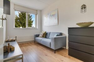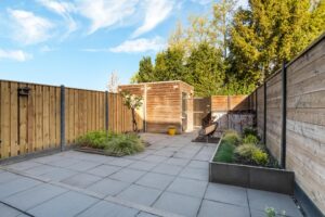 De achtertuin is een heerlijke plek, met veel privacy. Met moderne, grote tegels en een slimme indeling met groen, is dit de perfecte plek om te ontspannen of vrienden uit te nodigen. De achterburen zitten ver weg: lekker rustig en weinig inkijk dus! De huidige bewoners genieten ook van het wandelen in de omgeving. Je wandelt of fietst vanaf hier makkelijk de natuur in: via landweggetjes door de fruitgaarden of juist naar de polder met zicht op de rivier.