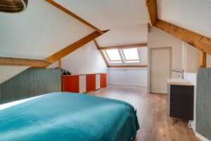 De woonkamer en eetkamer zijn lekker ruim, en dankzij de grote ramen is het hier super licht. Er zijn vier slaapkamers. Of je nu een groot gezin hebt, toe bent aan een fijne werkruimte aan huis of een hobbykamer wilt; hier kan het allemaal. Vooral de zolder is ontzettend groot! En met de nette afwerking, grote dakramen en hoge, schuine kap is dit een hele mooie ruimte.