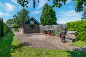 Parkeren is nooit een probleem met een eigen oprit en genoeg parkeerplekken in de straat. De garage is ideaal voor fietsen, de motor of als bergruimte voor je spullen. In de tuin staat ook nog een berging die ideaal is als klusruimte of voor je tuingereedschap. Ook een handige plek voor een extra koelkast, zodat je snel een koud drankje kunt pakken als je in de tuin zit!