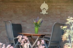 Dat er zo’n diepe tuin achter dit huis zit, verwacht je niet. De achtertuin is bijna 50 meter diep en biedt dus volop mogelijkheden voor tuinieren, speeltoestellen of gezellige zitjes. Dankzij de hoge heg heb je hier alle privacy die je nodig hebt. De huidige bewoners genieten enorm van de overkapping: hier kun je tot in de late uurtjes heerlijk beschut zitten. Ook hebben ze een prachtige bloemenzee aangelegd waar volop vlinders en andere insecten op afkomen.